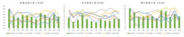 2022年12月我邦纸浆进口量236万吨(环比-5%,同比+24%),终年累计进口2917万吨(同比-2%),团体仍处于汗青高位。个中针叶浆12月进口61万吨(环比-1%,同比+5%), 终年累计进口717万吨(同比-15%);阔叶浆12月进口99万吨(环比-8%,同比+19%),终年累计进口1280万吨(同比+2%)。团体上阔叶进供词应仍强于针叶。