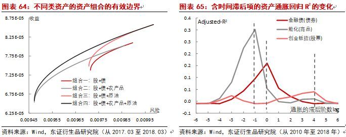 因为Brent原油永久贴水,当组合列入原油资产时,有用范围尾部取得昭着的抬升,而农产物展期收益基础为零,当组合内列入农产物时,有用范围左移,展现有昭着的分离危急的感化。除此除外,商品价值振动出现的收益永久来看之以是亲密零值,很大局部的源由来自于周期性蜕变的通货膨胀,二者的合系性较其他资产更高。咱们以含时光滞后项的线性回归取得各种资产收益与通胀环比的合联,结果发掘商品具有领先通胀的特征,况且R2也比其他大类资产更高(全体睹陈说《通胀视角下的资产装备法子》),以是装备商品资产另一个宗旨,便是能够诈欺商品对冲通胀振动的危急。那么以是基于以上这几个方面的特征,商人品为另类资产具有绝顶苛重的投资价钱,也慢慢受到越来越众的人合心。