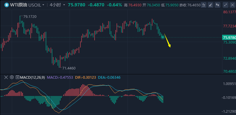 原油上周全体横向拾掇,正在前期高点压力下久盘不破高,尾盘承压回落,周线录得一根小阴线,日线则是中阴线的回撤。本周原油希望持续向下加调寻求低点维持。日线布林带先导收口。代价目前正在中轨左近运转,若失守中轨则向下轨回撤。周内区间依然闭心79.30-72.0.4小时图原油众次上探79.30高点最终仍是承压回撤。失守中轨,使得小周期偏弱少许,目前回撤靠拢首个维持点75.80.若此位失守,则短线低点一带。目前因为日线的探高回落,显示短线小时中轨转换成阻力,周初当心强弱转换。周内思道暂定是下探回升,周初先下探回落寻求维持,维系样子启稳后再反手。阻力点77.0-77.30一带短线反弹先空。欧美盘下探后再择低反手众