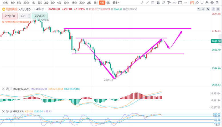 今日黄金对象占定确切,而早盘低点正在2626身分,服从目前的强度来看最少会有30个点+涨幅,目前的上方阻力看2657-2661区域,估计初度触及是能做空的,抓高点进场就行,如若冲破2661身分,更上方看2670和2680两个节点。
