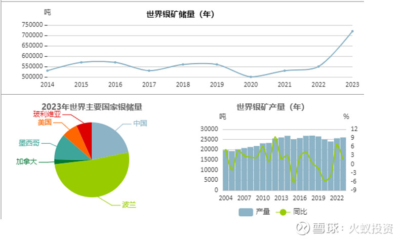 环球白银储量和产量漫衍分离。依照美邦地质探问陈述,2023 年环球白银资源储量约 61 万吨(近两年储量有所增加,静态储采比23年,当然思虑银接纳以及高价影响首饰及投资需求,该比例能够改革,但储量越来越小及咀嚼越来越低同时会推高白银的开采本钱进而刺激银价),厉重漫衍正在秘鲁、澳大利亚、俄罗斯、中邦、波兰、墨西哥等邦度。2023年秘鲁白银储量占环球总资源量的18%,澳大利亚、俄罗斯各占16%、15%。环球银矿产量会合正在北美、南美和中邦,2023 年环球白银矿产量排名前三的邦度别离是墨西哥 25%、中邦 13%、秘鲁 12%。