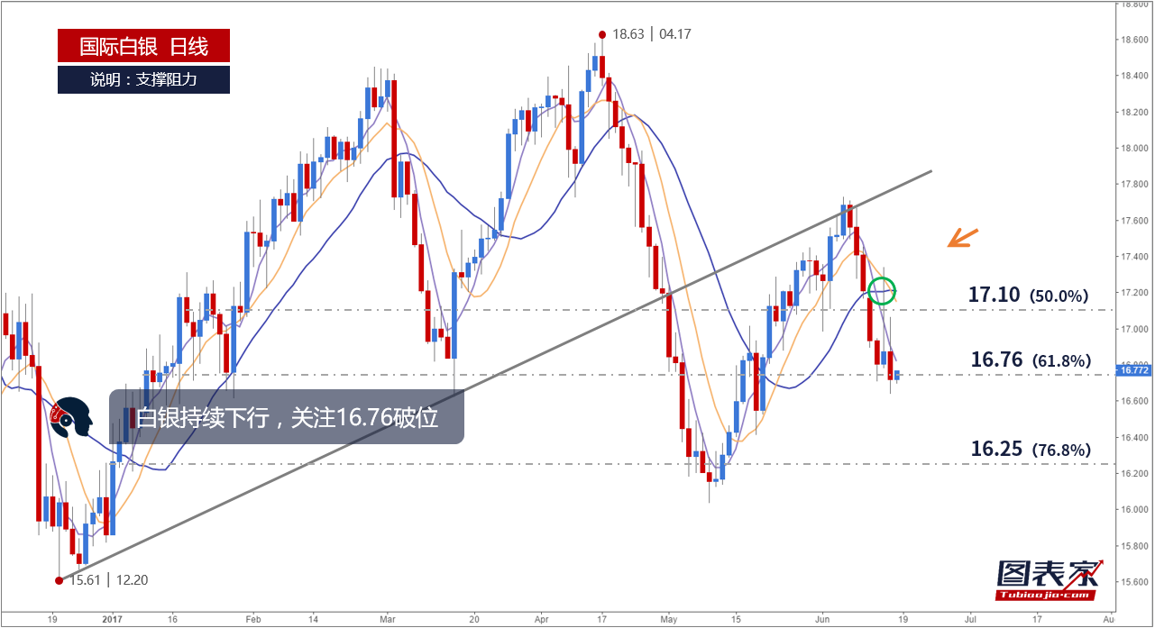 若代价进一步走低,下方支持睹斐波那契76.8%回调位16.25,若受支持后反弹,上方阻力睹斐波那契50.0%回调位17.10。