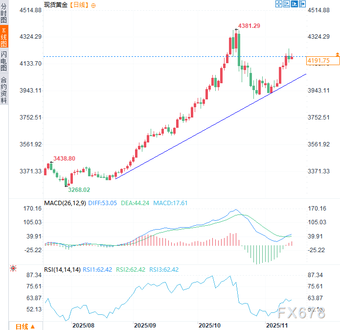 从技巧面看,黄金走势图仍展示看涨格式,但因为金价已进入4150至4250美元的枢纽区域,此时墟市对追高非常把稳。目下金价正正在测试10月21日大幅掷售时刻失守的前期撑持区域——彼时更始高的冲破走势遇到激烈压制,这标识着黄金对象性转机点的闪现,也让墟市正在黄金预测中判定起码会酿成阶段性顶部。