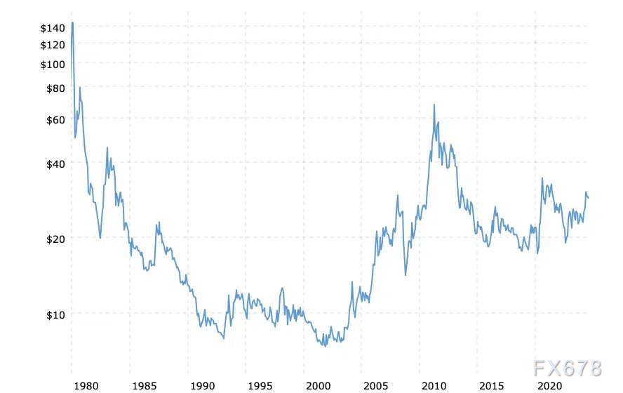 无论是外面价钱如故实践价钱,今朝的白银都比2011年和1980年低廉。目前的银价也比2020年经通胀调治后的银价低廉。以下是股票投资者和投资者须要研讨的几点: