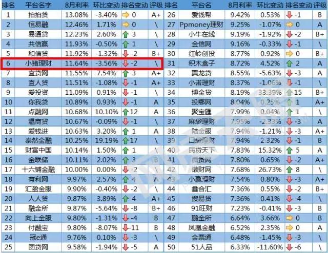 我们还针对建工担保贷进行了大力度的加息活动2025年12月27日克日,威望P2P流派网站网贷天眼揭晓8月P2P交往数据排行榜,对成交额前50名的平台举行体系阐发,并公告众项数据榜单,此中小猪理财众项目标榜上着名,正在与投资人便宜直接合连的“利率榜”中,小猪理财更以高达11.64%的收益率排名全行业第六。榜单排名详情如下