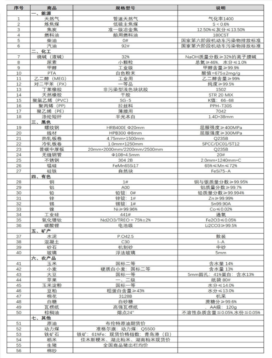 本外所示大宗商品价钱(种别与产物规非常明睹附外)为以公民币计价的现货价钱(蕴涵通畅用度、利润和税费等)。计划这些价钱时运用的讯息出处,关键包罗邦内重心区域的临蓐商、生意商及下逛消费企业之间的成交、询报盘及可成交价钱。价钱单元为公民币元/吨。