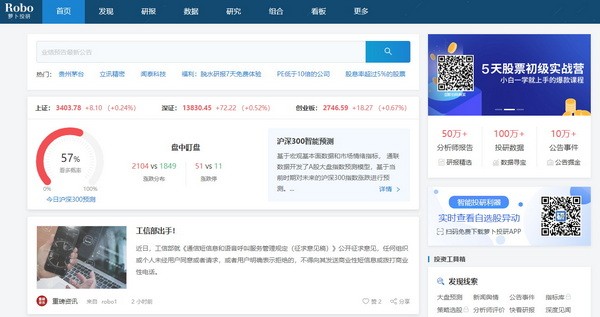 2、监控股市数据,领悟投资资讯,发掘股票投资线、一站式获取“行业数据、研报、通告、信息、财报、财富链等充分股市闭系音信”