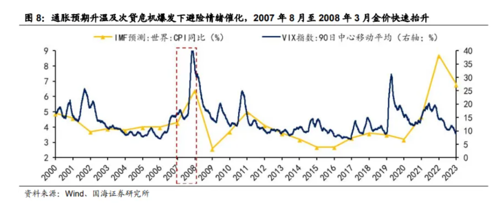 金价疾速抬升。2007年今后油价疾速上行推升环球通胀预期,以两伊为核心的中东地缘政事景象赓续告急推升黄金代价,而跟着2007年8月次贷风险延伸,具有避险属性的黄金再度受到市集青睐,而为应对滚动性风险美联储于2007年9月开启降息,现实利率下行配景下金价疾速走高。