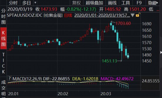 记者戒备到,3月9日,美股和原油暴跌之际,伦敦黄金现货一度冲破1700美元/盎司,创下近7年新高,但随后继续下跌,目前曾经跌破1500美元/盎司,跌逾11%。伦敦白银现货则3月以还已暴跌近30%。