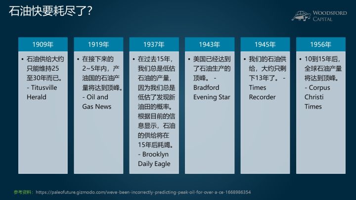 一个特别好的例子,是对待石油产量的预测。正在过去100年间,行业专家不停的发外告诫,预言地球上的石油只够开采十几年。可是,这些预测不停的被阐明错的离谱。
