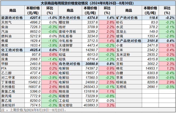中邦紧张大宗商品市集代价更正环境周报 (240826--240830)