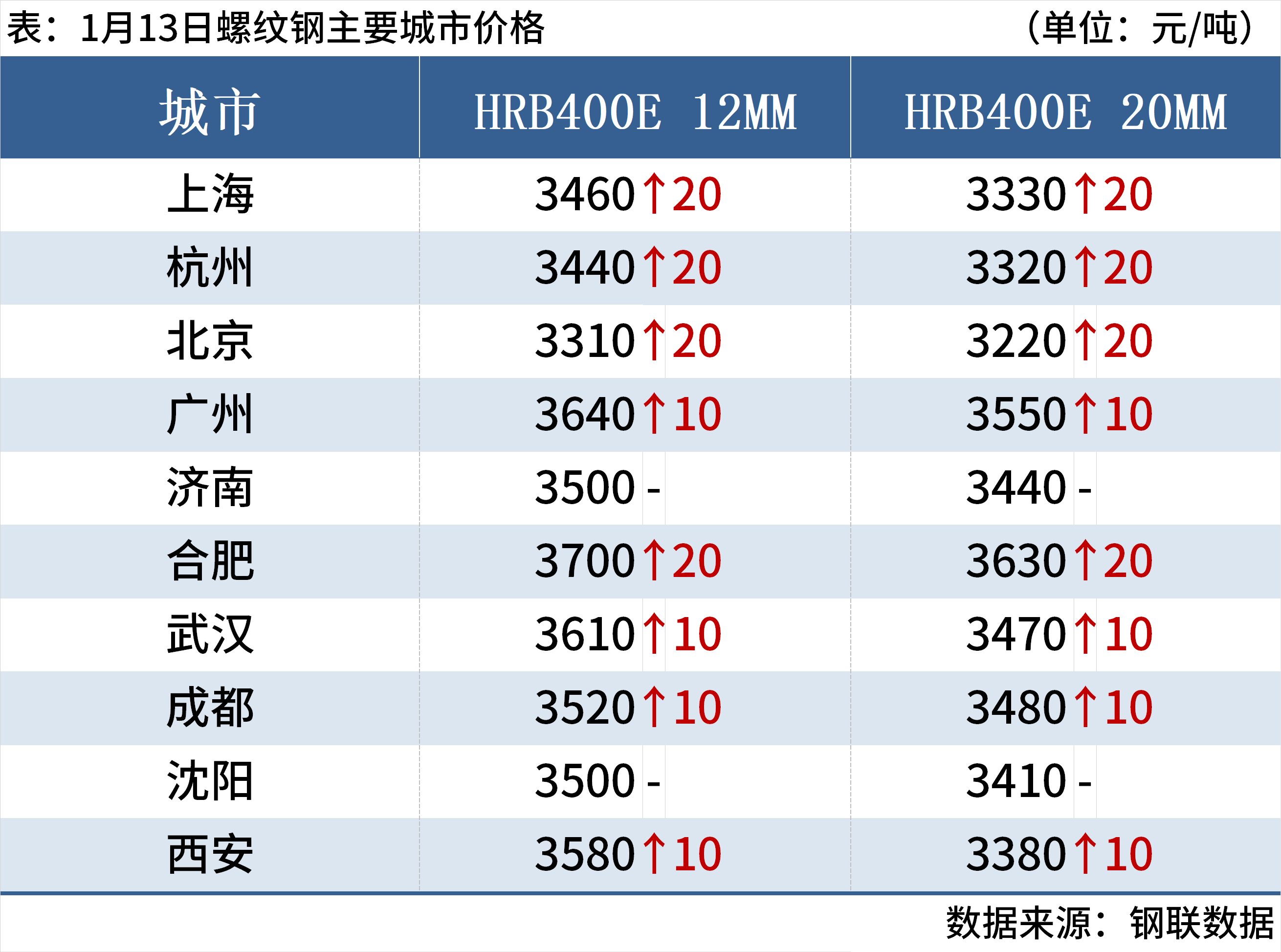 中厚板:1月13日,寰宇24个闭键都市20mm普板均价3497元/吨,较上一买卖日上涨7元/吨。代价较高的华东、西南根基全天维稳,华东-华北加价差稍有缩小。营业商估计价差再缩小50-70元/吨控制,华东客户将不会北上采购,复原寻常。成交方面,13日墟市活泼度扩充,下逛采购需求分明好于上周,举座成交好转。根基面来看,前期下跌行情,中板钢厂锁单量扩充,故长协资源发货不如之前,局部普板规格已经缺货,华东墟市普板预售较众。需求方面,邻近节前终端根基上都正在有准备的观看采购,跟着13日盘面上涨,估计本周有小幅的采购热潮。归纳来看,估计14日中厚板代价稳中偏强运转。