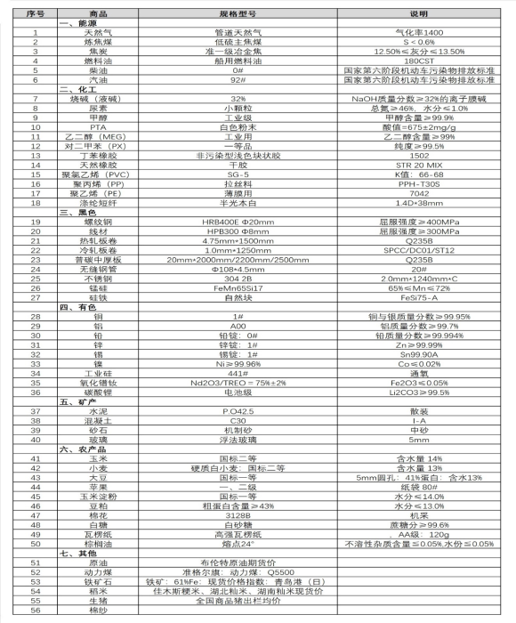 本外所示大宗商品价钱(种别与产物规格外明睹附外)为以黎民币计价的现货价钱(包罗畅通用度、利润和税费等)。估量这些价钱时利用的音讯由来,苛重囊括邦内要点区域的分娩商、交易商及下逛消费企业之间的成交、询报盘及可成交价钱。价钱单元为黎民币元/吨。