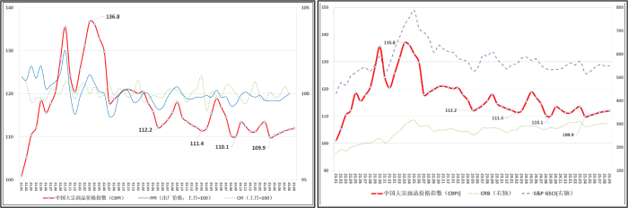 从邦外里指数斗劲看:CBPI与上月PPI、CPI走势根基划一。8月PPI环比由消重0.2转为持平;此中,坐褥原料价值环比上涨0.1%,存在原料价值环比消重0.1%。8月CPI环比持平;此中,食物价值环比上涨0.5%、非食物价值环比消重0.1%。CBPI与S&P GSCI指数小幅上涨、CRB指数小幅回落。9月美联储告示降息25个基点,但受环球经济苏醒顾忌影响,众半大宗商品价值随市集预期兑现和得益结束,呈颤动回调走势。