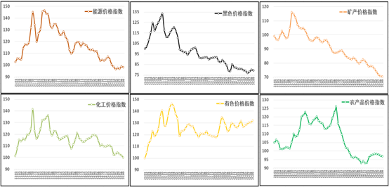 分行业看:有色价值指数延续走高,报131.8点,月环比上涨1.1%,年同比上涨5.7%;矿产价值指数低位颤动,报70.4点,月环比下跌0.1%,年同比下跌11.4%;农产物价值指数小幅下行,报96.7点,月环比下跌0.4%,年同比上涨2.1%;能源价值指数略有回落,报98.0点,月环比下跌0.7%,年同比下跌5.4%;玄色价值指数颤动走低,报79.0点,月环比下跌0.8%,年同比上涨0.7%;化工价值指数延续跌势,报100.0点,月环比下跌1.9%,年同比下跌9.1%。