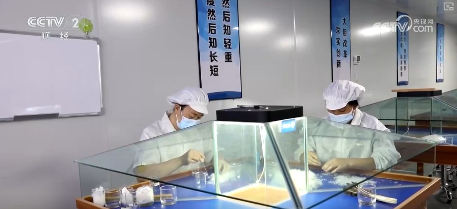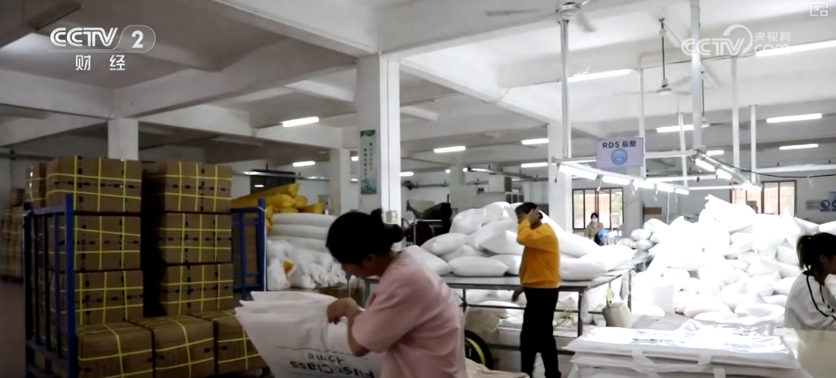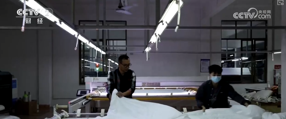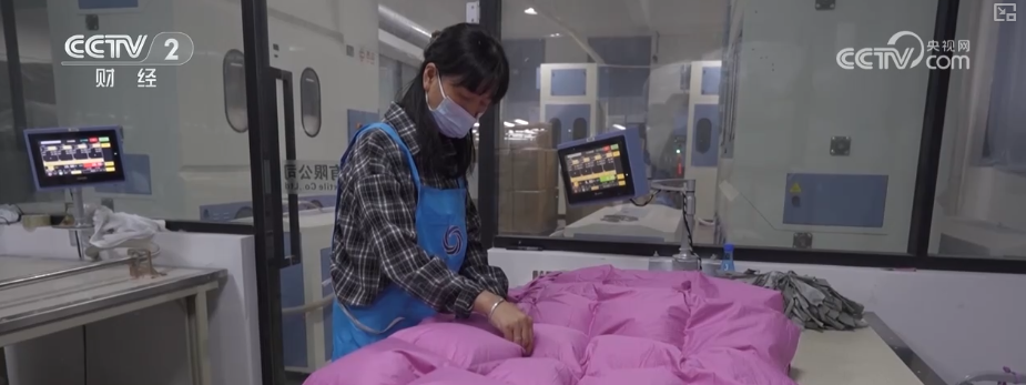 而正在江苏泰州的这家丝绸企业,车间内工人们正娴熟拉制蚕丝网、赶制蚕丝被,缝制车间呆板满负荷运转,三班轮岗赶订单。羽绒成品返单接续填补 原料加工企业满负荷运转