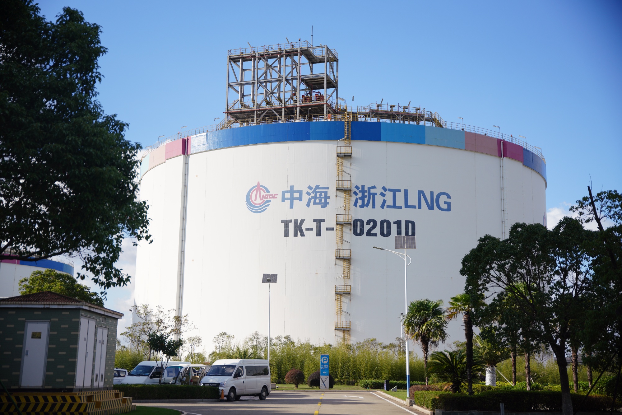 走进华东区域最大的LNG保税货仓——中海浙江宁波液化自然气有限公司,6座LNG储罐伫立个中。