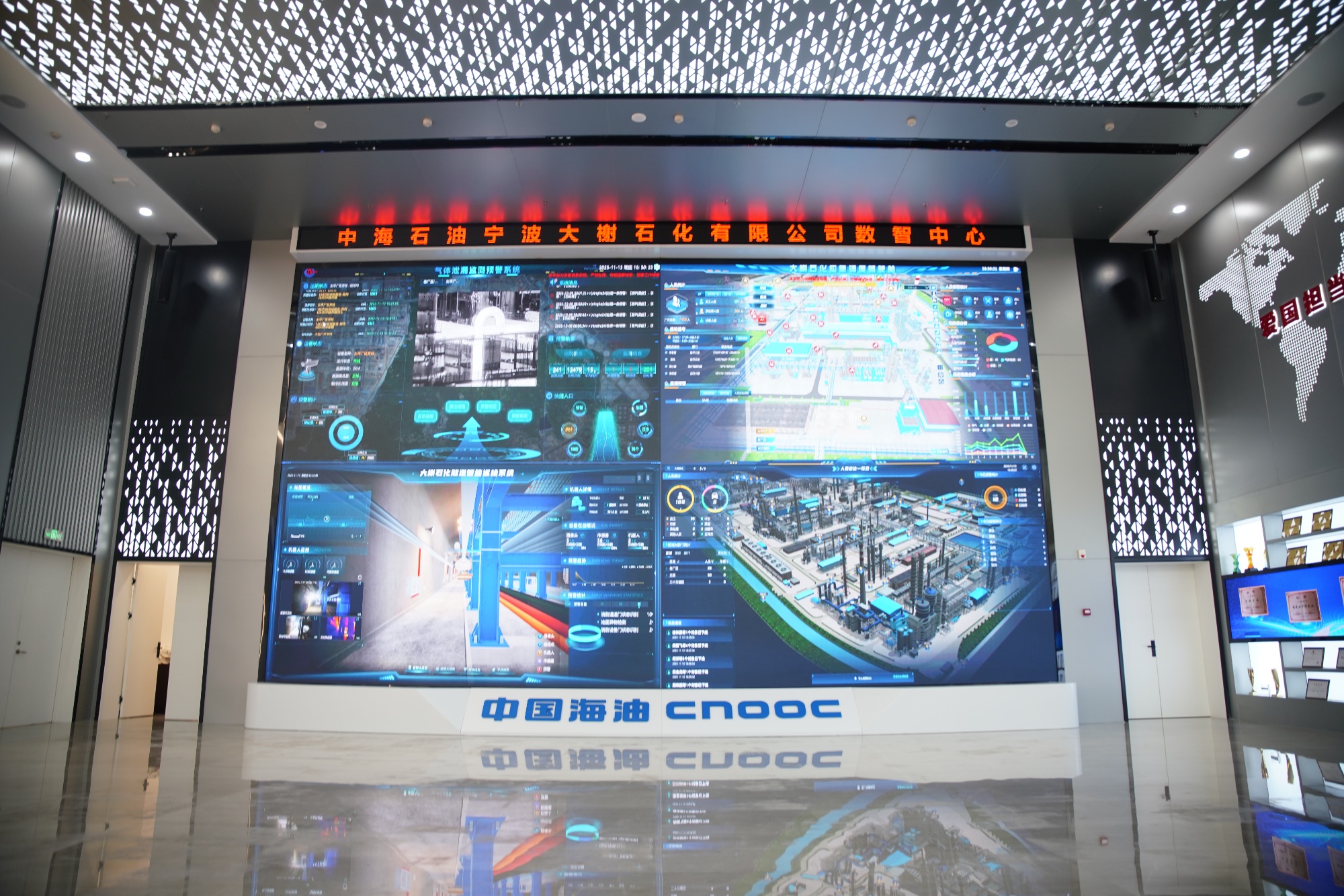 正在中海石油宁波大榭石化有限公司的数智核心内,气体透露监测预警、应急调换驾驶舱、地道智能巡检、职员定位一张图等数字化编制分明通晓,透过屏幕就能够看到厂区内摆设境况、预警境况、紧张源明白等。