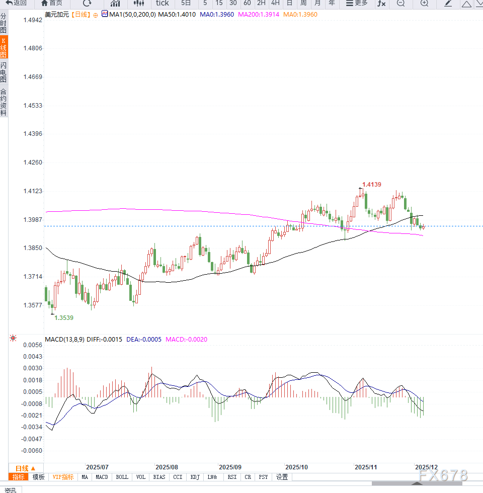 从日线周期考察,USD/CAD近期显露微小颠簸上行,但具体众空仍趋于平衡。代价正在 1.3940-1.3965 区间动摇,短线相近,若守住该程度,则有机遇测试1.4000合口。