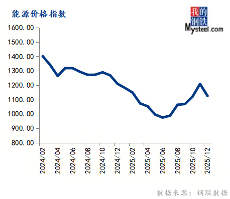 12月份能源价钱指数为1124.89,环比下跌6.92%,同比下跌6.92%。