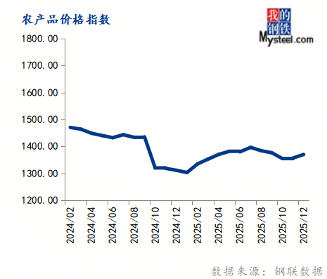 12月份农产物价钱指数为1370.19,环比上涨0.96%,同比上涨4.46%。