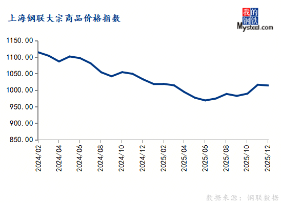 1月炼焦煤供需保持韧性2026年1月5日2025年12月份,上海钢联中邦大宗商品价钱指数(MyBCIC)终值为1014.05,同比下跌1.78%,降幅较上月有所收窄;环比下跌0.21%,已毕不断三个月上涨态势。