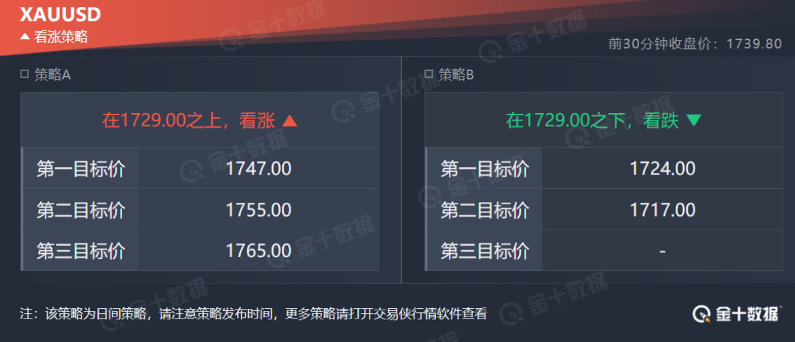 500)this.width=500 align=center hspace=10 vspace=10 alt=现货黄金正在众空转变点1729上方看涨,第一倾向为1747,第二倾向为1755;若金价回落至1729下方,则看跌,眷注1724和1717维持。