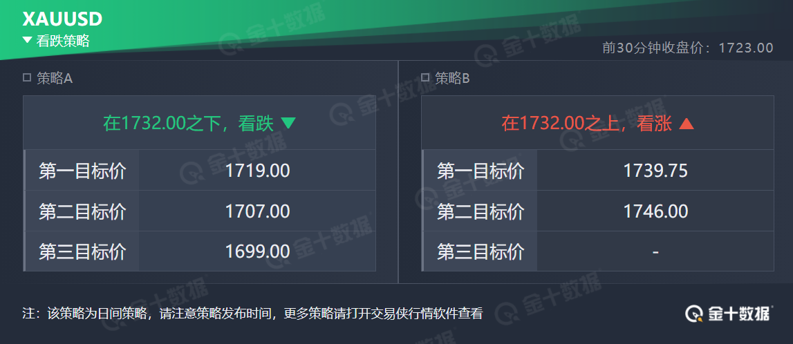500)this.width=500 align=center hspace=10 vspace=10 alt=现货黄金众空转动点正在1732,目前正在这个水准看跌,下方注意1719、1707两个维持;若回升到1732上方,则可接纳看涨看法,上方要体贴1739.75和1746两个阻力位子。