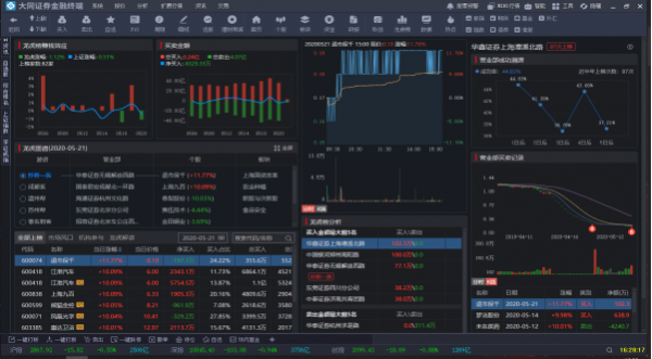 龙虎榜首页整合全部上榜股票,并供应商场风口、机构介入、自选股、龙虎解读等列外分类,同时右侧供应龙虎榜精细领会,揭示营业金额最大前五名以及分时k线可视化涌现;