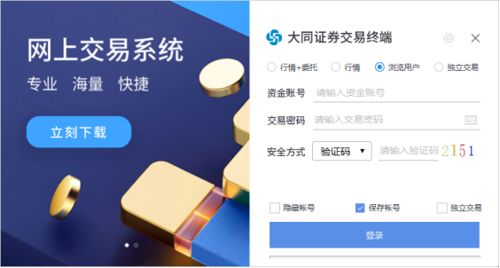 登录页面照旧采用扁平化的气派,融入简约的因素,支柱行情+委托、行情、浏览用户、独立贸易等四种式样。