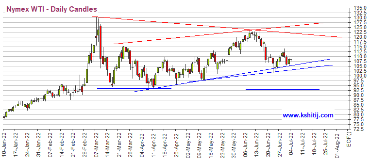 WTI原油期货已从支持位105美元/桶大幅反弹,并也许测试短期阻力位112.50美元/桶。