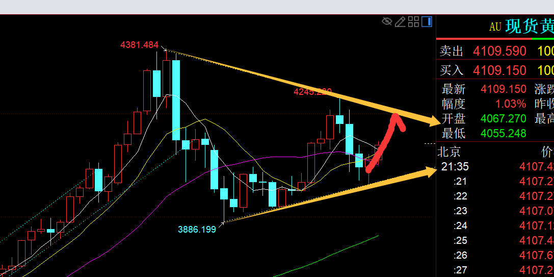 第三,黄金小时线级别:从上图通道漫衍看,隔夜收盘前曾经冲破站上了白色通道上轨,弱势形式也就结果,今日早间回踩确认上轨支持可能是4060一线,而它也做了一次小刺穿假象,最低4055.5,稳住拉升后,就一齐惊动上攻,每次出大阳,紧接着便是惊动回踩,再企稳接连出大阳;可能觉察,每次回踩的低点都是前一波拉升的618决裂处,4060、4078都是,于是它们都是看涨点,技能上也走的比拟外率;欧盘拉升破高,今晚另有二次上涨,结尾一波回踩618决裂位子是4095-94,恰巧也可能对应黄色通道下轨,触及接连看涨(当然,也或者回踩不到,那样只可讲明它反弹力度强化了),阻力先审慎4120-21,其次是4150,这两个位子是4244-3997的50 和618决裂点,特别重心合心4150,也是前期赤色通道上轨,初次触及该当有些承压回落,究竟是惊动期;但二次探索,三次探索去冲破的线界限;