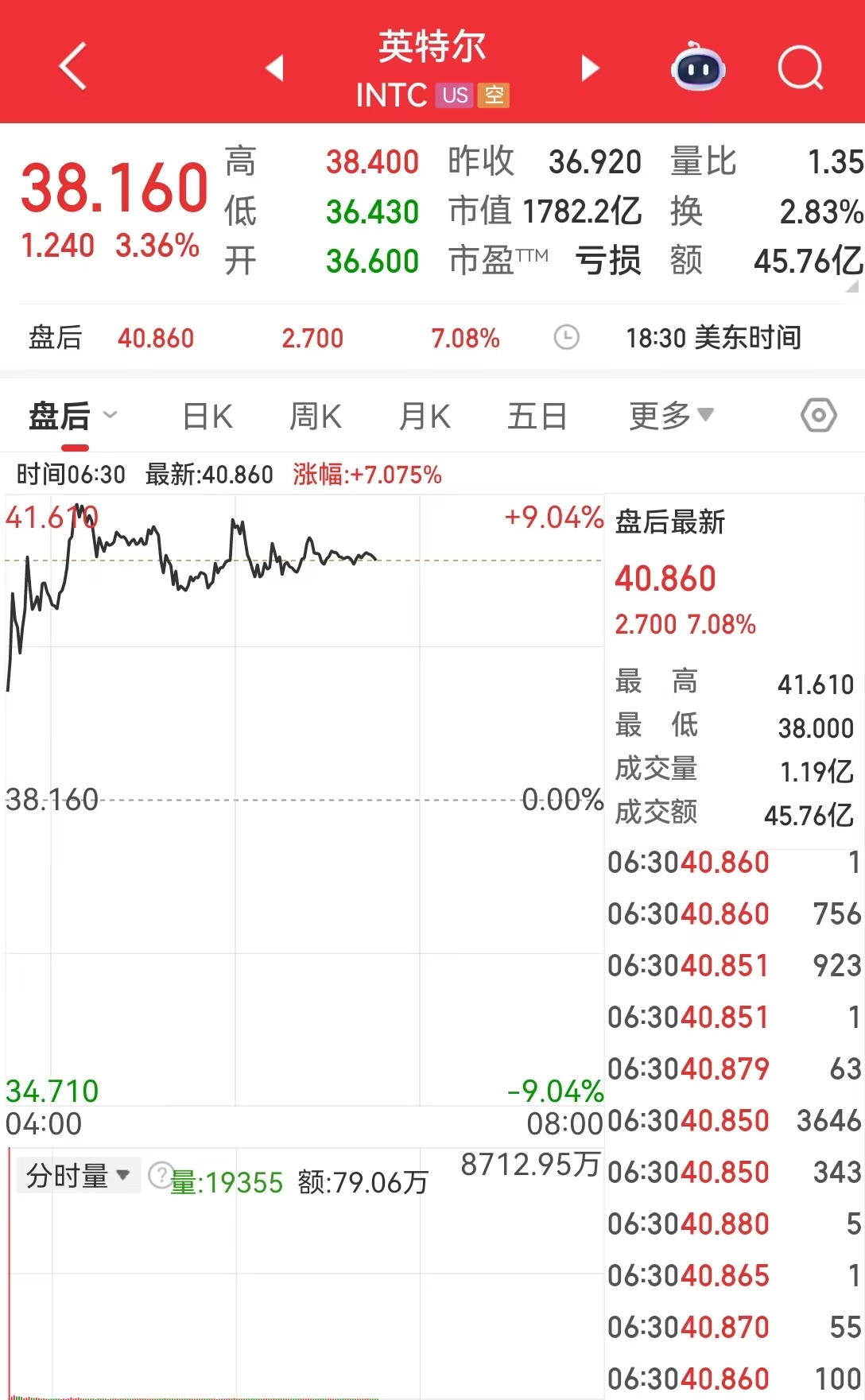 英特尔第三季度营收136.5亿美元,同比增添2.8%;第三季度经调理毛利率40%,商场预估36.1%;第三季度调理后每股收益0.23美元,上年同期每股耗费0.46美元。英特尔估计第四序度营收128亿美元至138亿美元;估计第四序度经调理毛利率36.5%;估计第四序度调理后每股收益0.080美元,商场预估0.10美元。截至发稿,英特尔盘后涨7%。