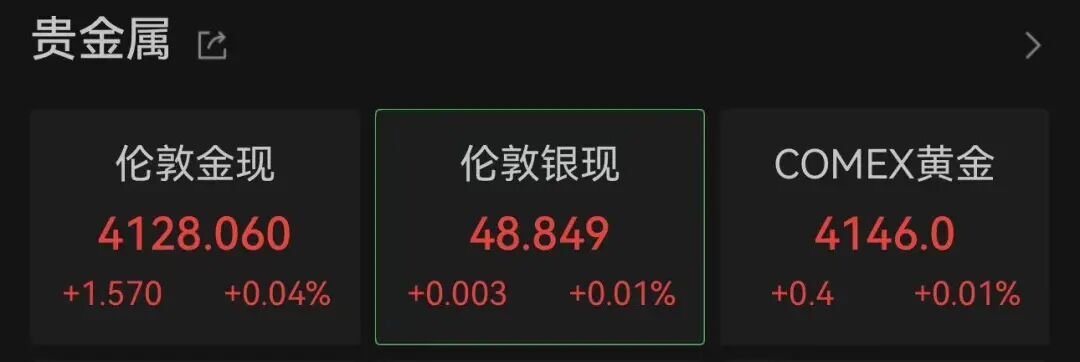 10月23日收盘,现货黄金涨0.7%,报4126.49美元/盎司;COMEX黄金期货涨1.91%,报4143.2美元/盎司。截至24日8:25支配,现货黄金、白银小幅上涨。