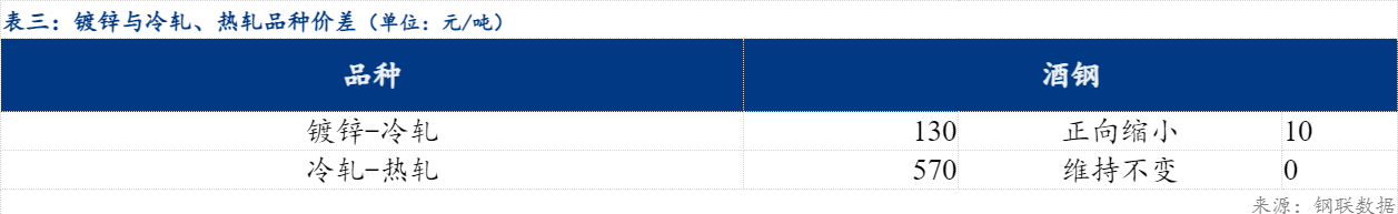 价差方面看,今日兰州与西安墟市价差维护稳定、与安阳墟市价差维护稳定、与天津墟市价差正向扩充10元/吨、与乌鲁木齐墟市价差维护稳定。种类价差看,今日镀冷价差正向缩小10元/吨,冷热价差维护稳定。