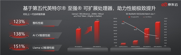 京东大模子第一次亮相就成就完善结果,很洪水准上要归功于其安排的基于第五代英特尔® 至强® 可扩展处分器的新一代自研供职器,与上一代自研供职器比拟整机职能擢升23%,枢纽的AI CV推理职能与 Llama v2大模子推理职能更是折柳擢升38%与51%。
