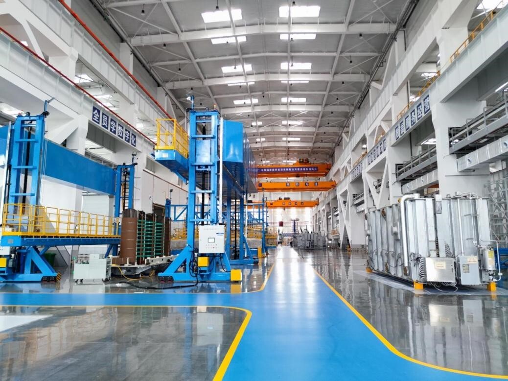 输变电装备再制造中心生产制造车间设有解体复装、线圈、铁芯修复套装、干燥、器身装配、注油静放、试验、油箱检修等多个功能区;智能集中仓储配送中心是行业内第一家集中式智能化仓储配