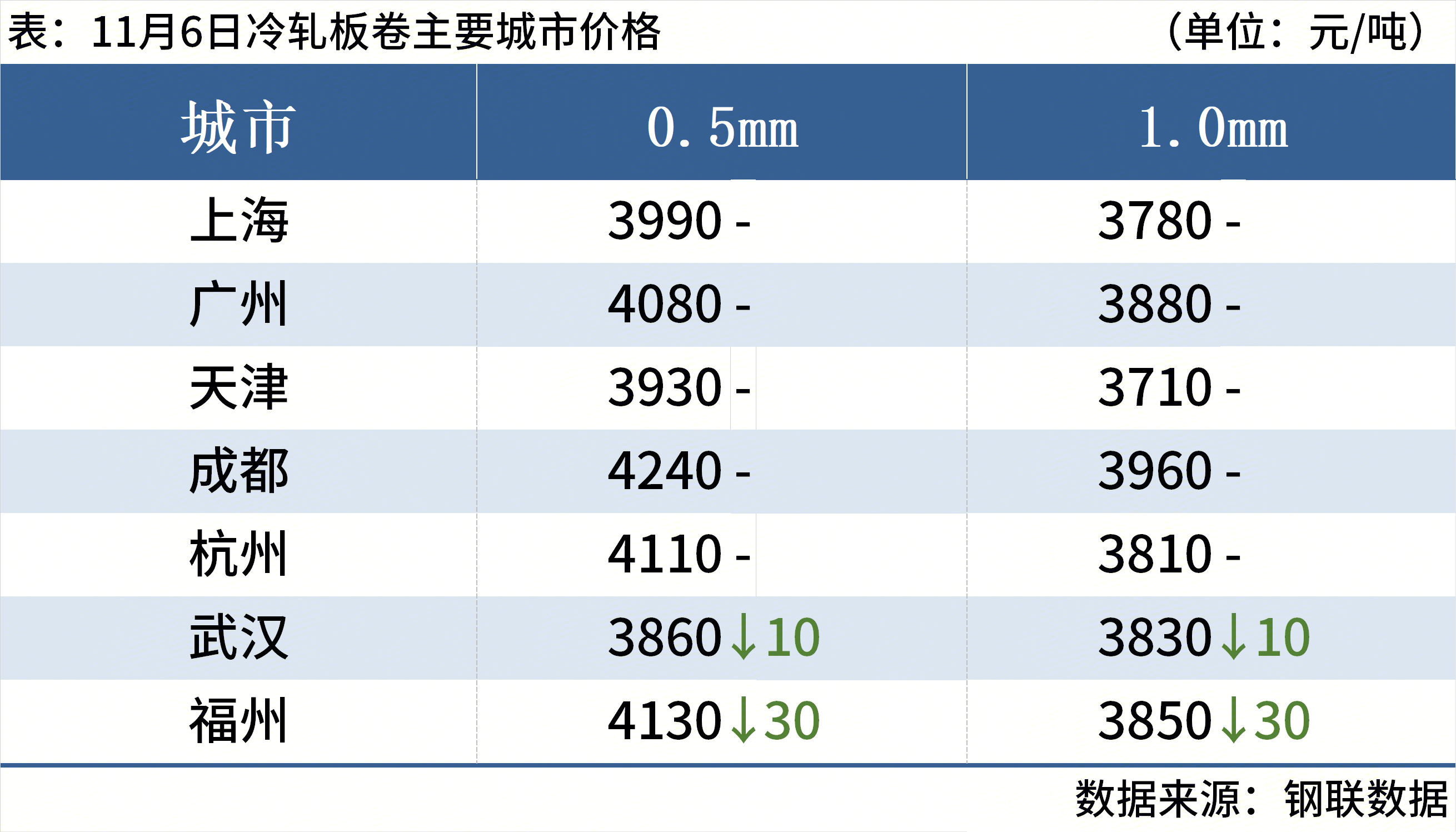 冷轧板卷:11月6日,天下24个厉重都市1.0mm冷卷均价3911元/吨,较上一交往日下跌2元/吨。如今下旅客户众是按需拿货,受季候性要素影响,需求已露出转弱态势。尤其是北方区域,受气象影响,需求进一步下滑,后续赢余产能也将慢慢向南方变化。Mysteel监测29个都市库存,本周冷轧板卷社会库存233.94万吨,周环比裁汰2.80万吨,月环比增众12.48万吨,库存一连去化。归纳来看,估计7日邦内冷轧板卷价值或将窄幅振动运转。