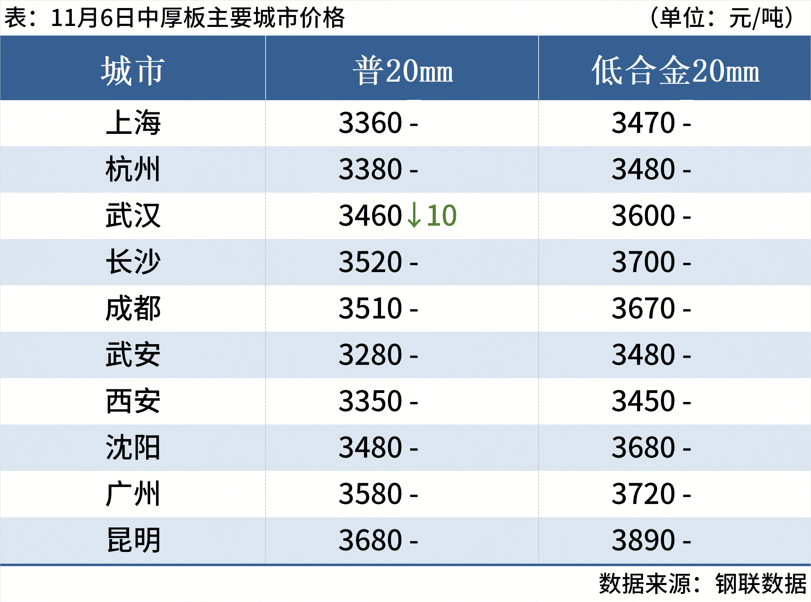 中厚板:11月6日,天下24个厉重都市20mm普板均价3446元/吨,较上一交往日持平。墟市交投气氛平常,武安、江阴等厉重中厚板集散地库存较大,低价出货,已成交为准。下逛用户以观看为主,众家询价,采购价值大局部墟市低价。归纳来看,现货价值小幅下跌,墟市成交平淡,下逛需求疲软,库存压力较大。估计7日天下中厚板价值稳中趋弱为主。