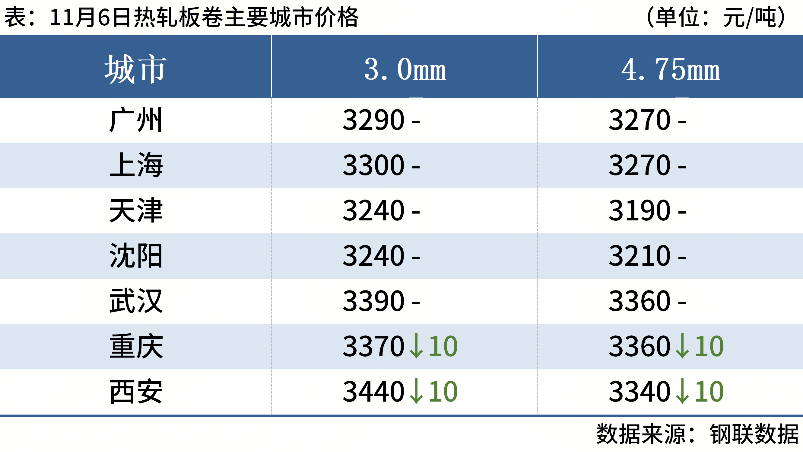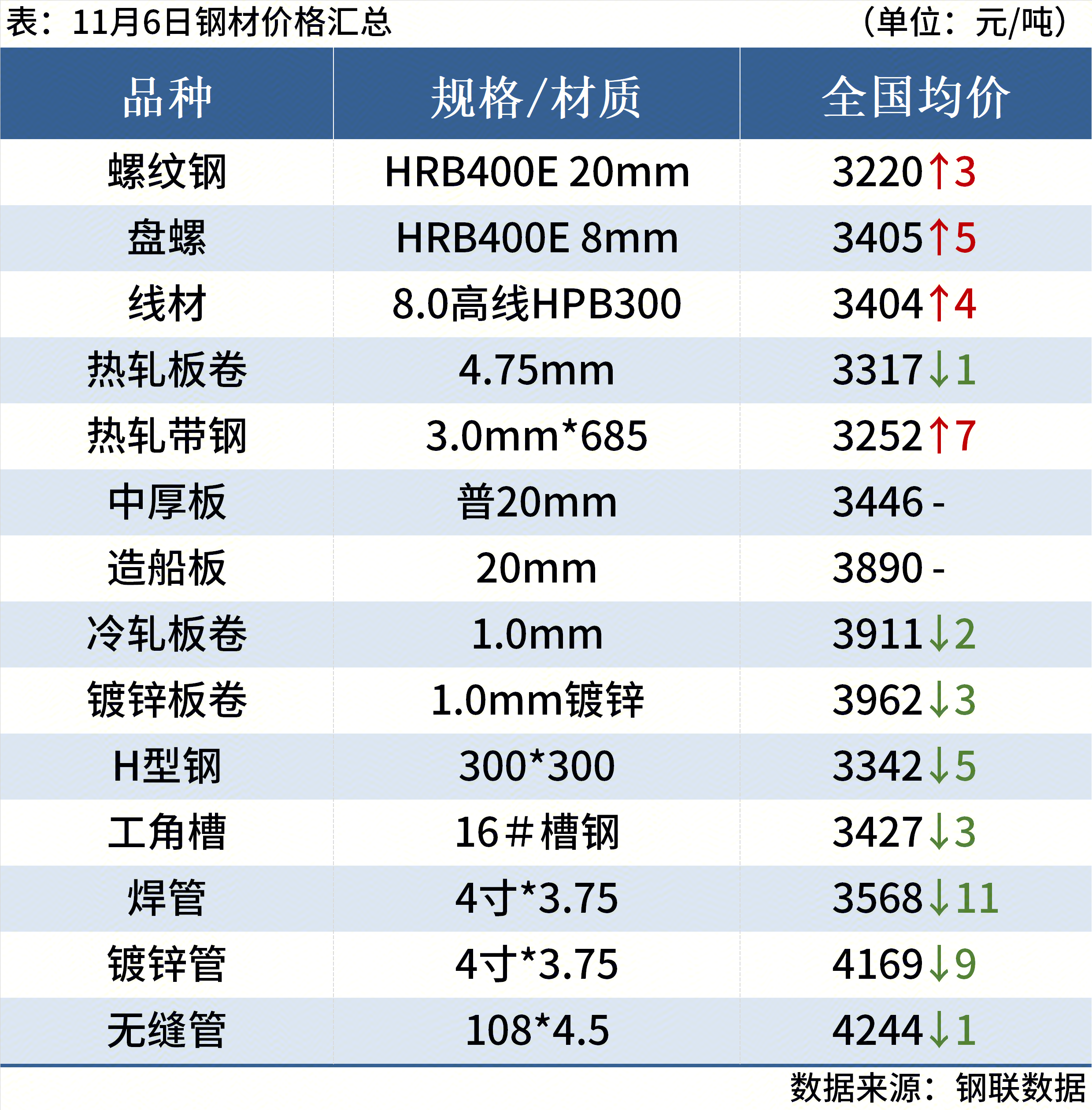热轧板卷:11月6日,天下24个厉重都市4.75mm热轧板卷均价3317元/吨,较上一交往日下跌1元/吨。宏观利好告一段落,现货价值振动调动,众方接续博弈,一边是居高不下的供应和日渐遇冷的需求,一边是不绝下探的成材价值和硬挺的原料本钱,墟市缺乏信仰。行情的一连走弱以致终端补库隆重,墟市成交谢绝乐观,社会库存难以消化,进而商家众暗降出货。伴跟着成材消费进入淡季,后续外需回升有必然难度,短期内弱实际霸占主导的面子难以改造,估计7日天下热轧板卷价值偏弱运转。