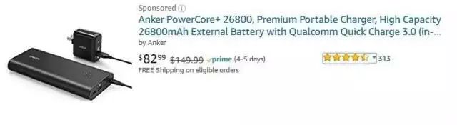 (如下图 Anker此款的挪动电源售价高达82.99 美金,熟习挪动电源的友人可以估计下利润几何。)