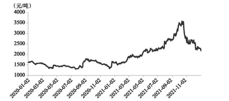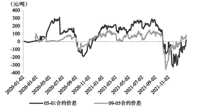 起首,套利往还比单边往还的震撼率更低,往还者面对的危机更小。2021年2月至4月纯碱期货主力合约收盘价震撼区间正在1596元/吨至2087元/吨,震撼幅度为491元/吨;同期09-05合约价差震撼区间正在0~125元/吨,震撼幅度125元/吨。2021年10月至12月纯碱期货主力合约震撼区间正在2183元/吨至3583元/吨(睹图6-14),震撼幅度为1400元/吨,同期09-05合约价差震撼区间正在0~144元/吨(睹图6-15)。由此可睹,纯碱单边操作所面对的价值绝对值震撼要远弘远于合约套利价差绝对值的震撼,加倍是能手情震撼更大的时辰,单边往还面对的危机也更高,此时,套利往还的对冲效率更为越过。