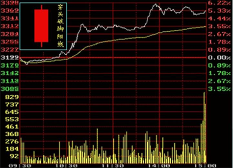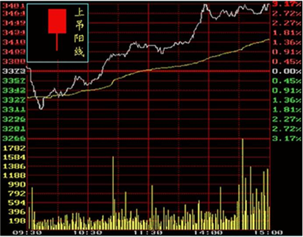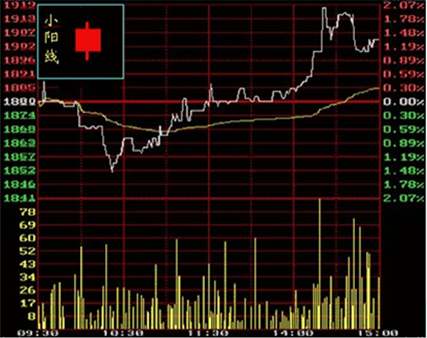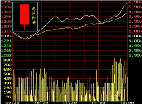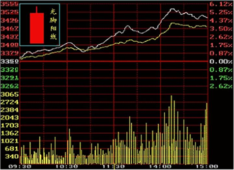 (5)秃顶阳线,展现正在低位区域,正在分时走势上体现为股价探底后渐渐走高且成交量同时放大,预示为一轮上升行情的起首,借使展现正在上升行情途中,解释后势不断看好。