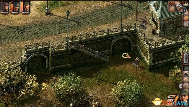 将镜头转到屋子后面,管制士兵绕到屋子后面,从这里能够对这四个仇敌举办掩袭,