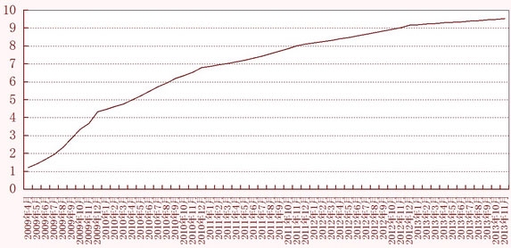 上图为徐教员2009年4月-2013年11月净值图(该资金弧线图由奇获投资供应)