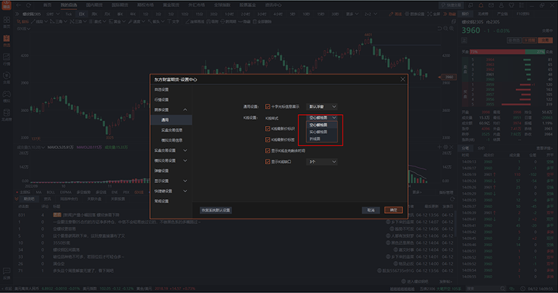 K线样式新增实心烛炬图、折线图样式,您可按照需求正在图外设立-通用中设立体验。
