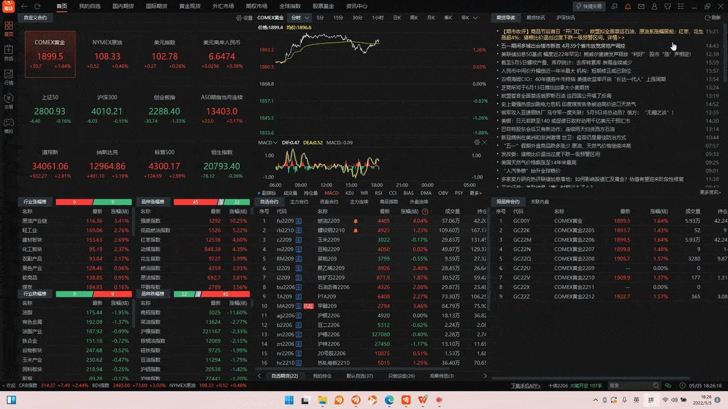 PC端行情图现已救援同时查看5个副图,您可正在期货详情页、实盘买卖界面、模仿买卖界面的副图右上角单击“加号”按钮添补副图数目。