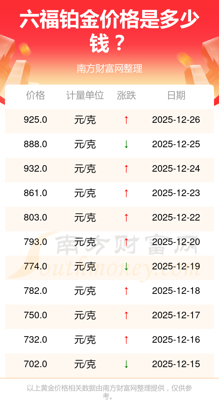 2025年12月26日各大金店铂金代价众少钱一克?各大金店铂金代价最新颁发