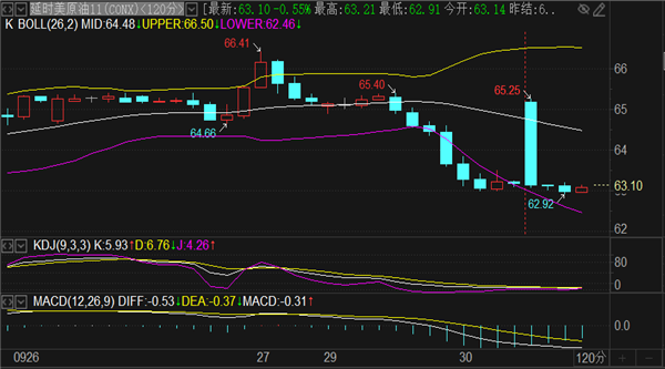 原油及时行情明白:周一原油的单边下跌,又把原油代价拖入固定的震撼区间66-61,不妨邦庆事后才会向上打垮这个箱体震撼区间。盘面上来看,目前1小时布林带上下轨收口,上轨承压64.2,下轨维持62.3,短线交投参照此区间高扔低吸修仓。至于大目标上来占定,从6月16日起,周线图形看涨趋向线平行生长到现正在,还是是位于61.1一线上方看涨应付。