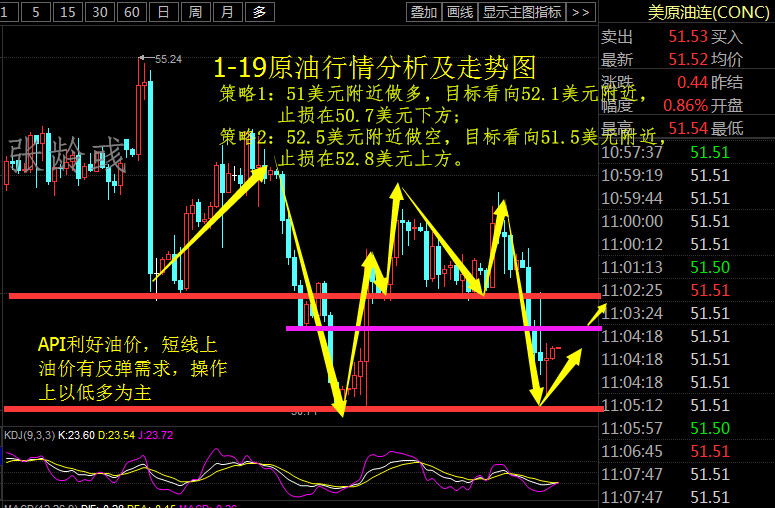 战略1:51美元邻近做众,方向看向52.1美元邻近,止损正在50.7美元下方;